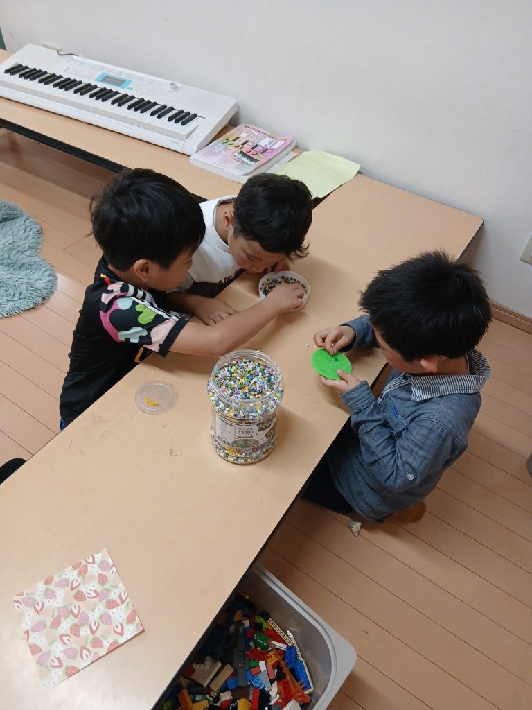 おやつを食べてお部屋でクラブ祭りの準備をしたり、園庭で三輪車やバスケ、はないちもんめをしたり思い思いに過ごしました♪お部屋に戻ってきてからは折り紙や読書、マンカラ、ONO99、アイロンビーズをしてあそびました!