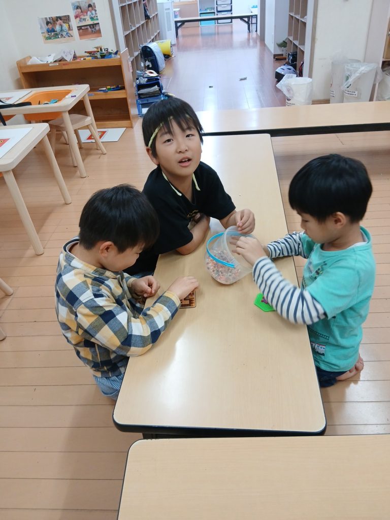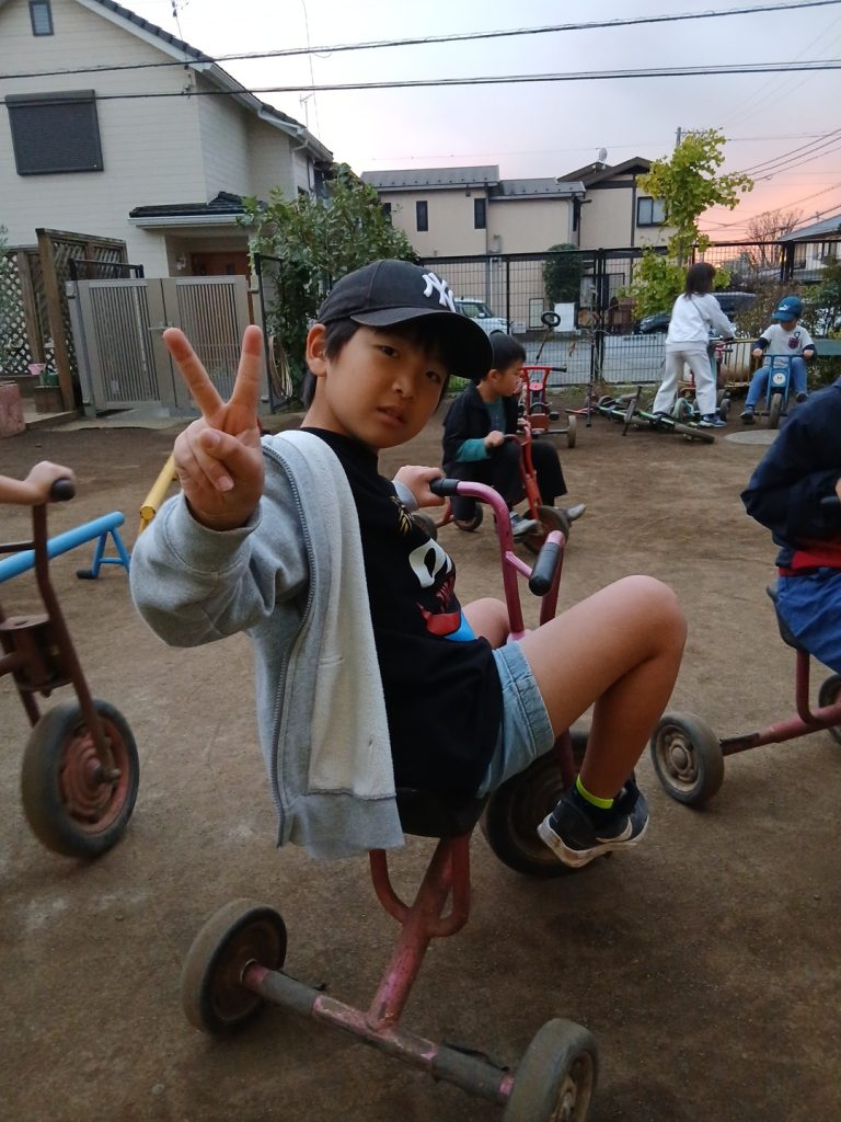 夕方はお部屋でアイロンビーズや読書、クラブ祭の準備をして過ごしました。また園庭・テラスで野球や鬼ごっこ、三輪車で交通安全ごっこをして遊びました!