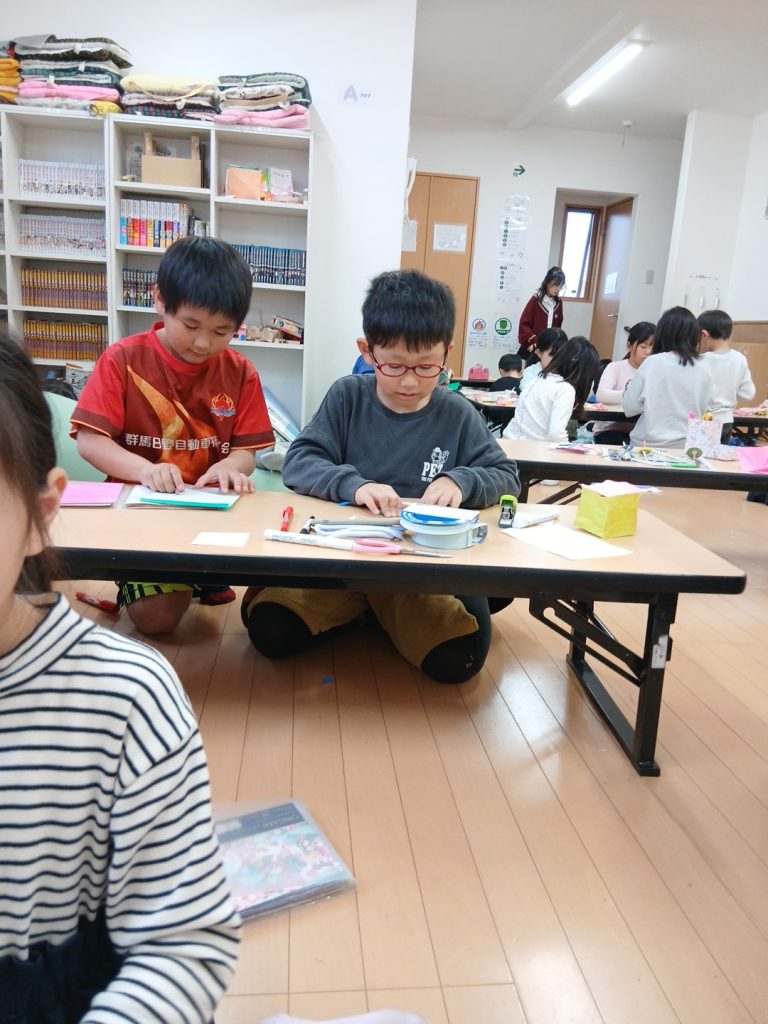 今日は全学年4時間授業で登所してからはクラブ祭りの準備をしたり、お部屋で遊んだりして過ごしました。