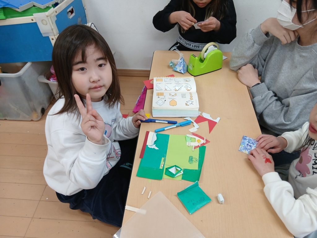 おやつ前のクラブ祭り準備も順調に進み来週は接客練習ができそうです♪景品作りは来た人全員に渡すか得点によって種類をかえるか等、みなさん迷っているようです。せっかくなら全員渡したいと優しさに溢れた案がでています☺