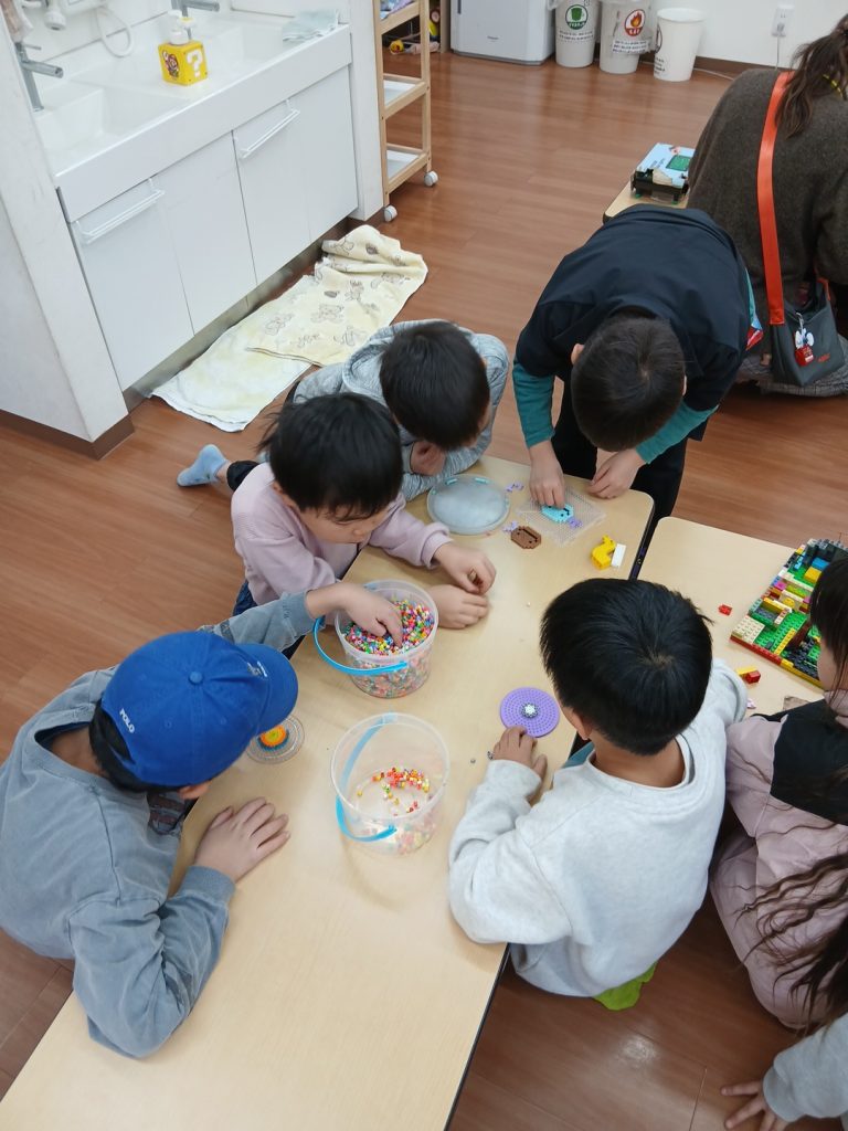 今日は登所後、宿題を済ませてからアイロンビーズをしたりレゴをしたり、他にも読書やチェスなどをして遊びました。またテラスでは紙玉を使ってサッカーをして遊びました。