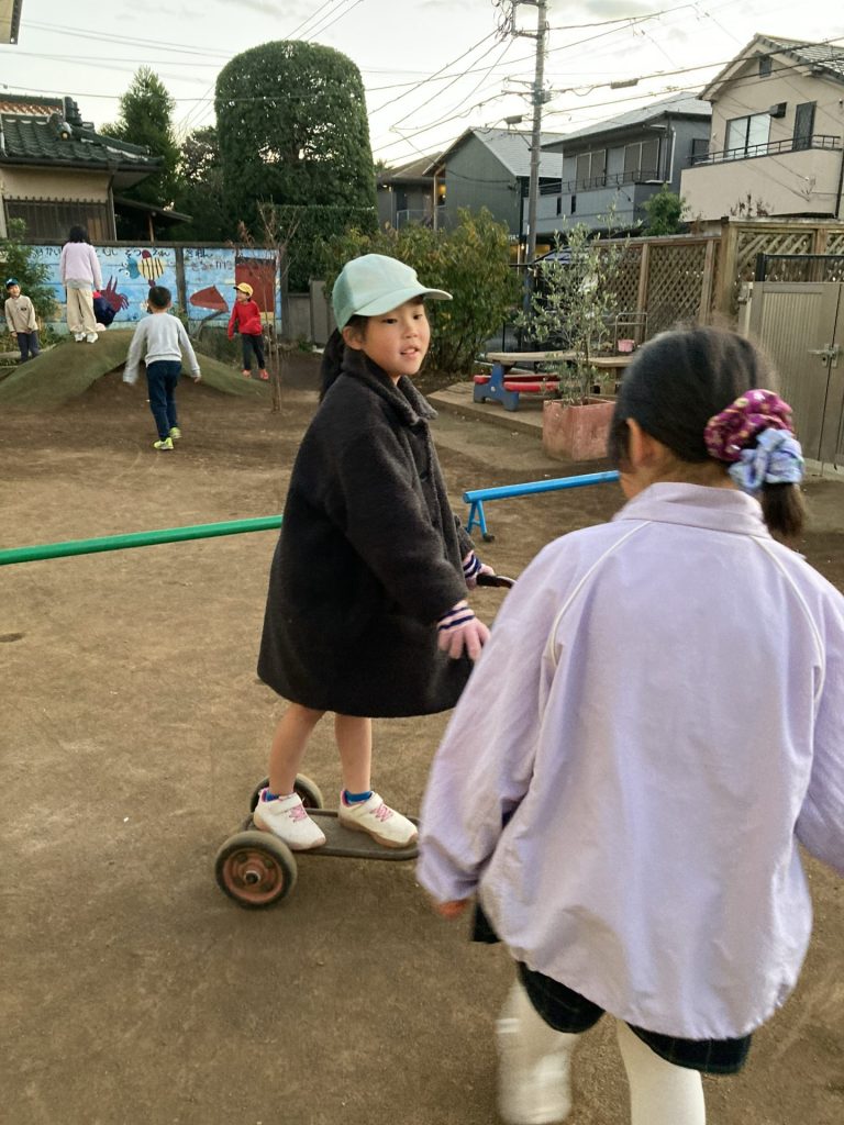 夕方には犬久保公園・グランド・園庭で野球や木登り、ブランコ、鉄棒、バスケットボール、三輪車等をして遊びました!