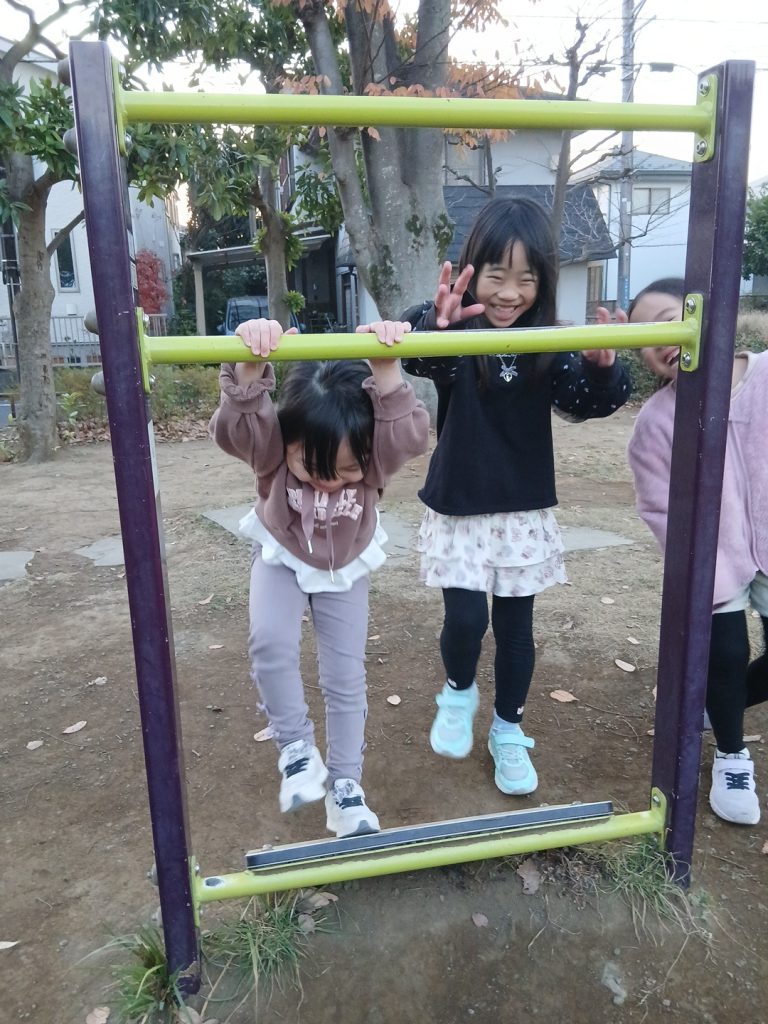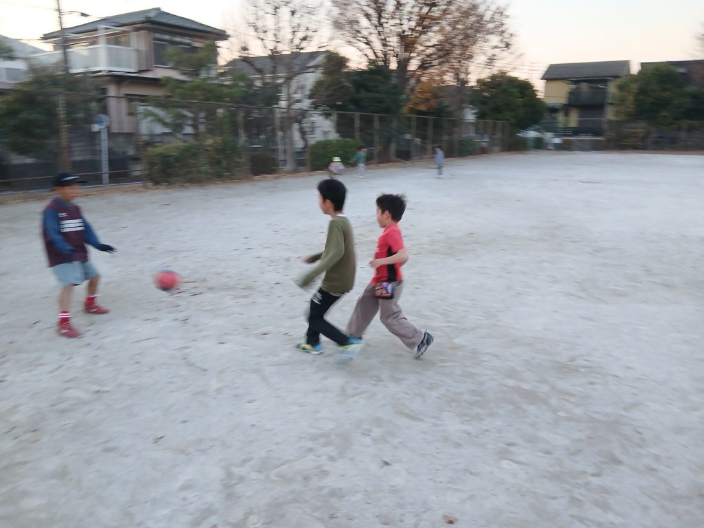 今日の夕方は犬久保公園・園庭・テラスでフリスビードッジ、三輪車、サッカー、バスケットボール、ホッピング、鉄棒、ブランコなどをして遊びました!