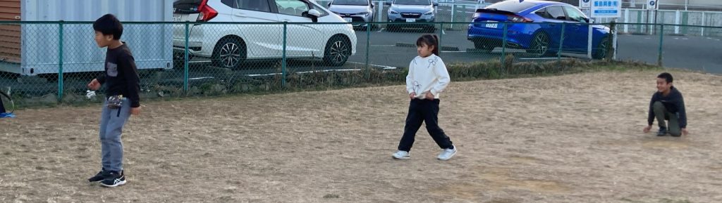 おやつの前、夕方と戸外遊びは緑の広場で「ドッチボール」で遊んでいます。
