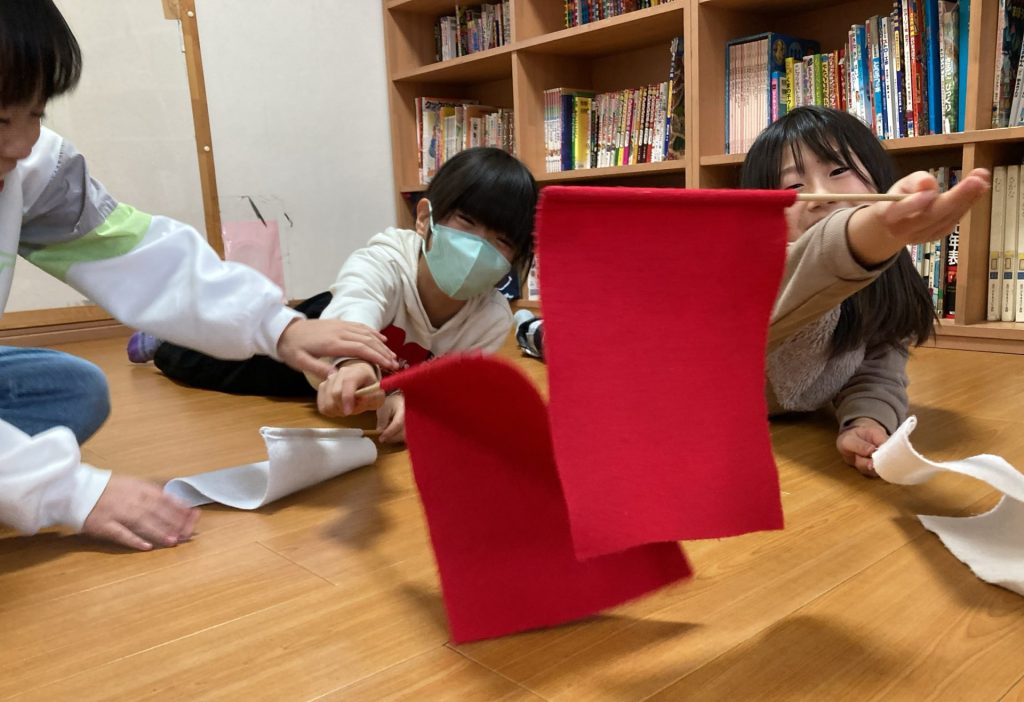 宿題のある子は宿題を済ませてからお部屋で遊びました。お部屋では、レゴブロック、ラキュー、ジェンガ・サッカーゲーム、トランプ、UNO、工作、プラ板製作、読書などをして過ごしました。