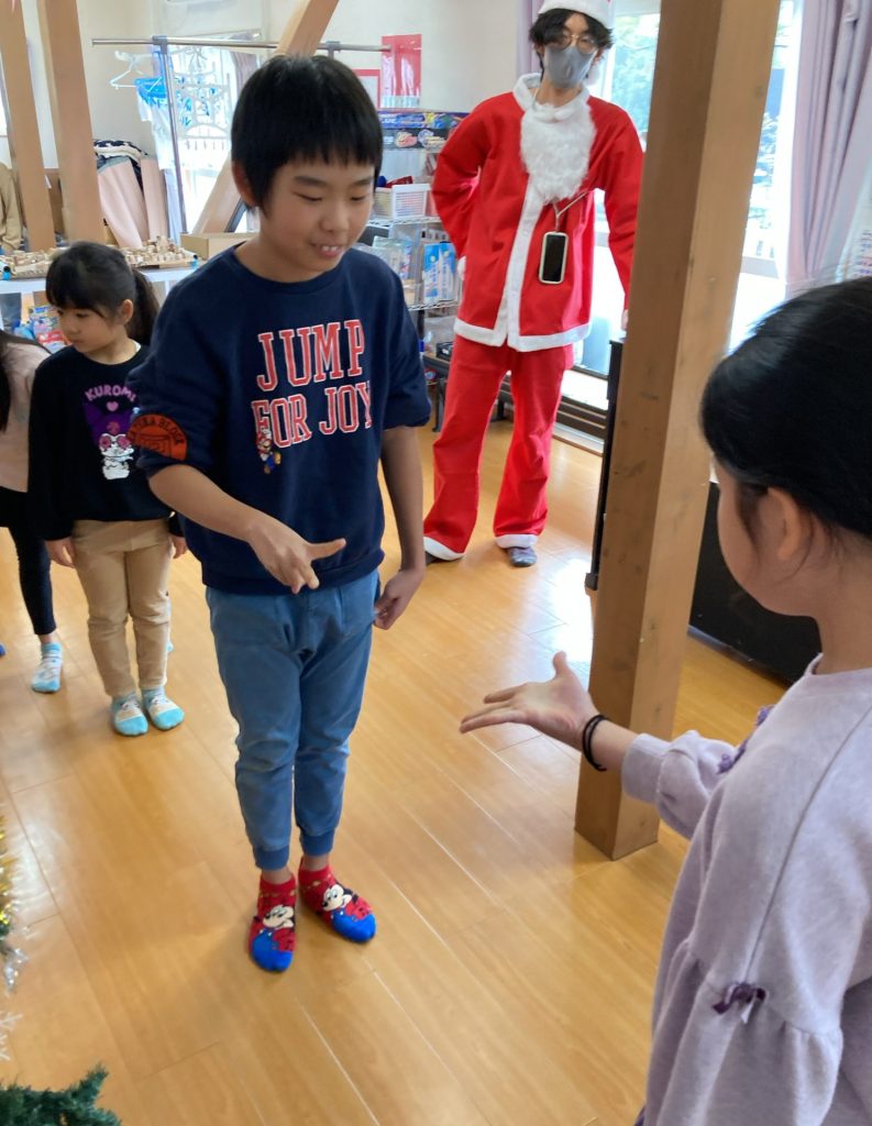2025年12月25日 / 最終更新日 : 2025年12月25日 社会福祉法人葵福祉会 葵KID’ Sクラブ 12月25日(木)今日のあおいKID’Sクラブ 今日「クリスマスお楽しみ会」! しりとりバクダンゲーム・宝さがし・じゃんけん列車やサンタじゃんけん うたにダンス・サンタさんとのゲームコーナーと盛りだくさんのお楽しみ会でした♪ じゃんけん列車はながーい列車になりましたね。2年生のお友達がチャンピオンでした♪ お宝はどこ❔ 華麗なダンスの歌・・・ サンタじゃんけんも楽しんでいました♪ FacebooktwitterHatenaPocket