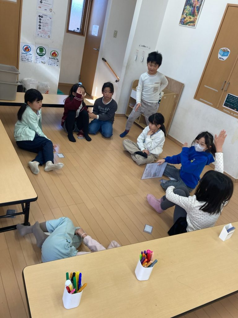 読書休憩をした後はお部屋で人狼ゲーム、折り紙、コマ回しなどをして遊びました。
