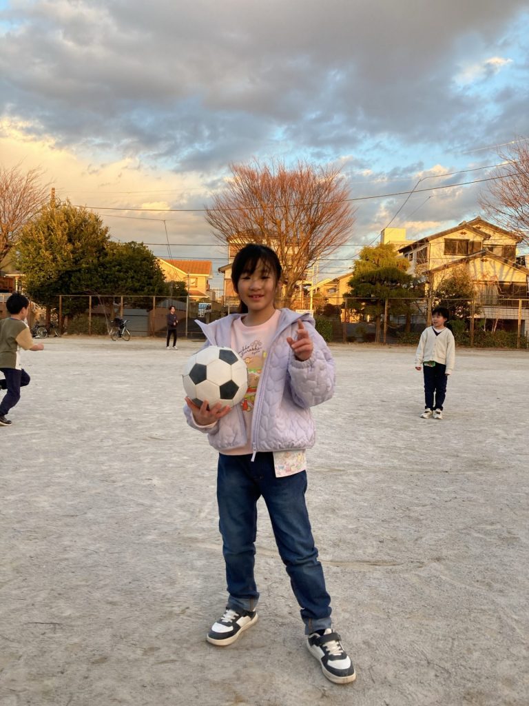 夕方には犬久保公園・園庭でサッカー、鬼ごっこ、ブランコ、三輪車、バスケットボールな度をして遊びました!