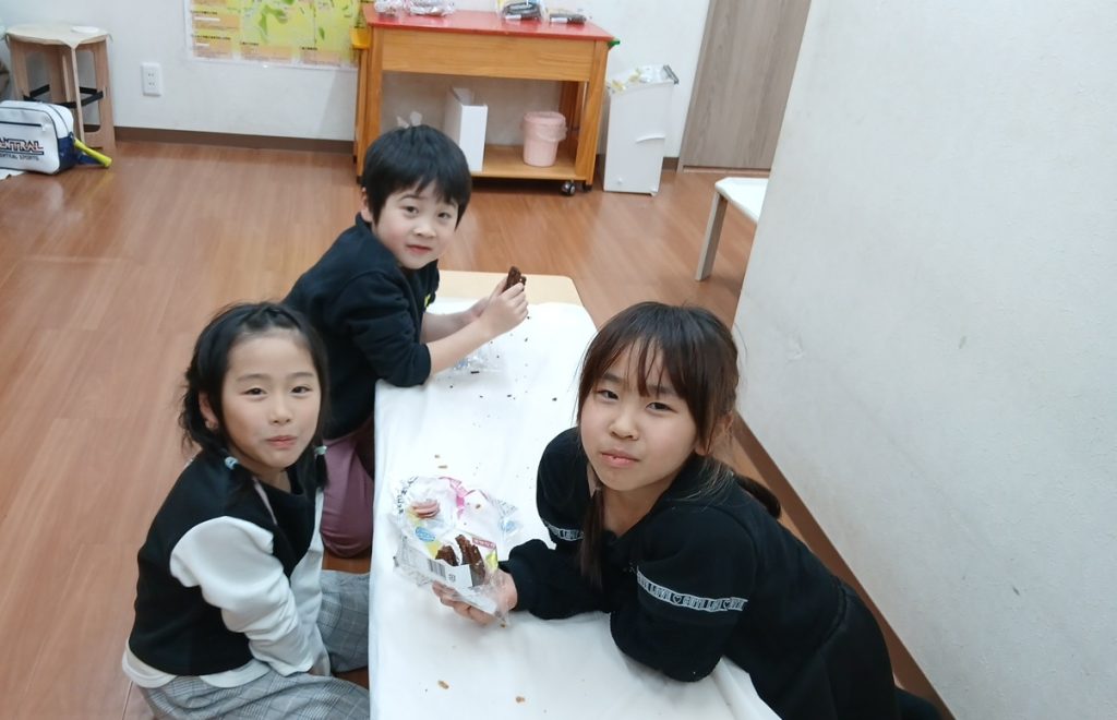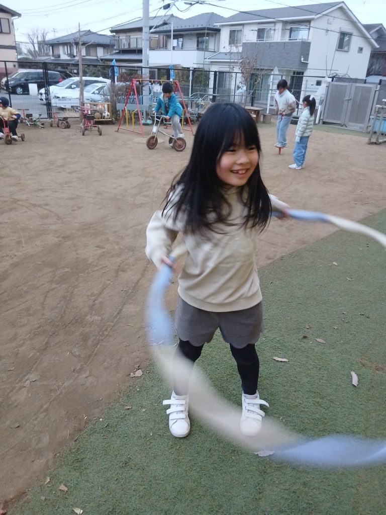 おやつのチュロッキーを食べた後は係活動をしてお外にいきました!犬久保公園では野球やサッカー、ブランコ、鬼ごっこをして遊びました。園庭ではバスケや三輪車、フラフープをしました♪