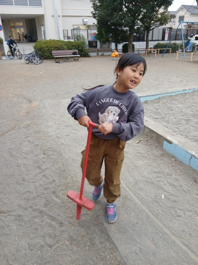犬久保公園・園庭・テラスではサッカー、木登り、ホッピング、ブランコ、鬼ごっこ、バスケットボール、三輪車、縄跳び等をして遊びました!