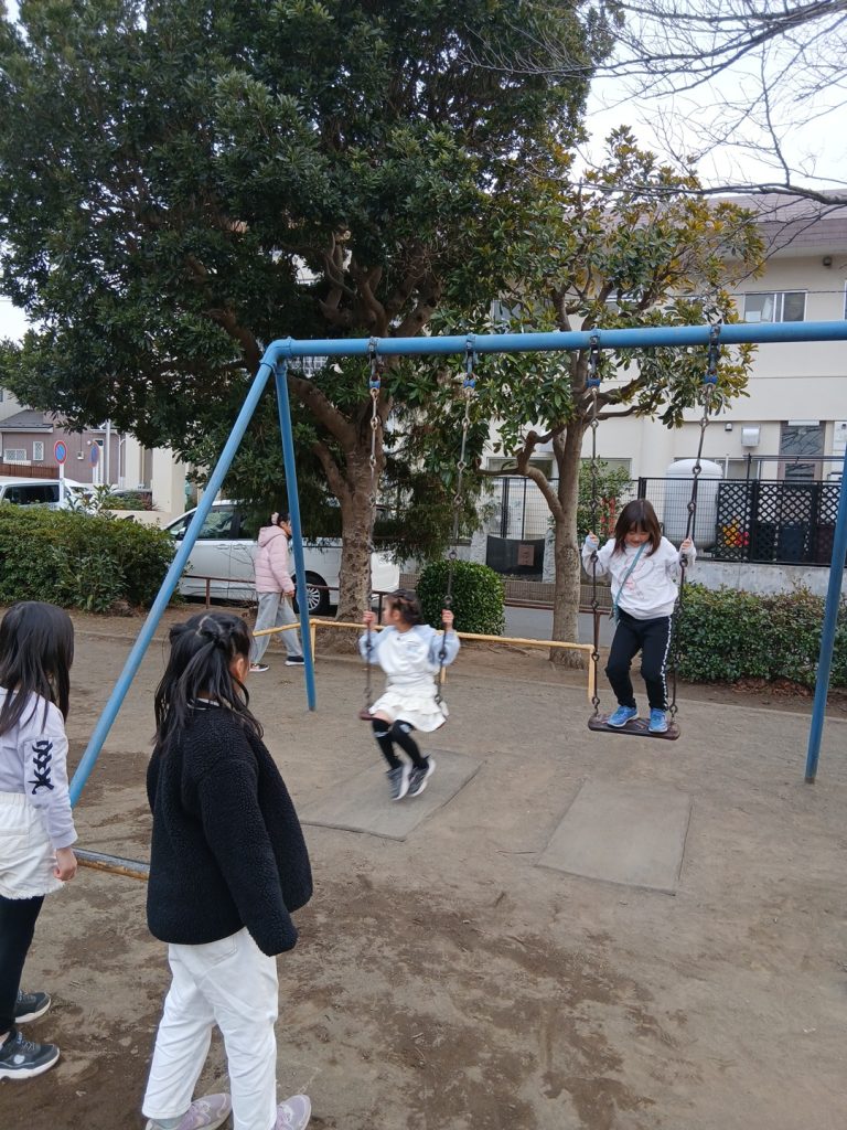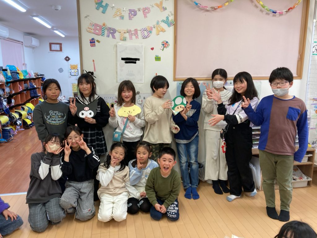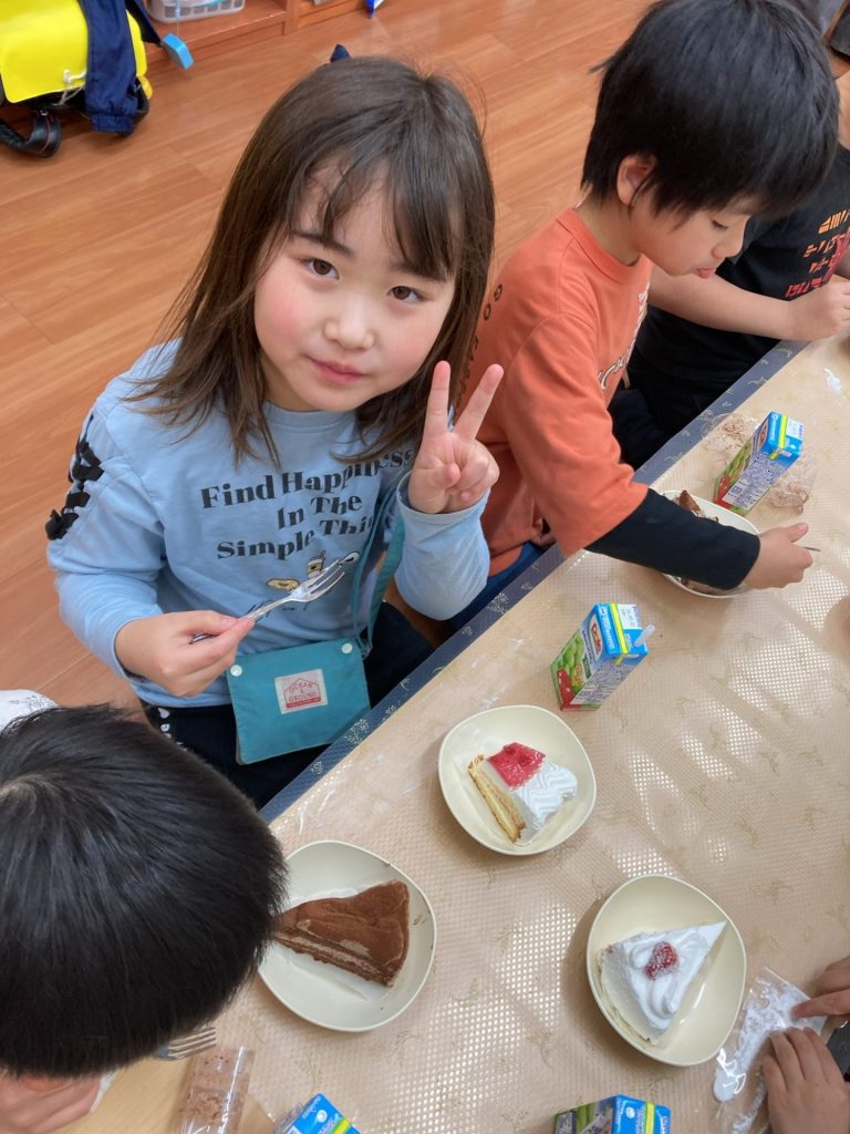 今日は、雲一つない青空が広がっていましたね♪1年生は、4時間授業、2年生以上は、5時間授業で帰ってきました。今日は、1月の誕生会だった為、おやつは、「ケーキ」と「ジュース」でした🍹誕生会では、宝さがしゲーム、ワードスナイパーをしました。物凄く盛り上がりました!誕生会の後は、帰りの会をした後に、犬久保公園とお部屋に分かれて元気いっぱい遊びました!