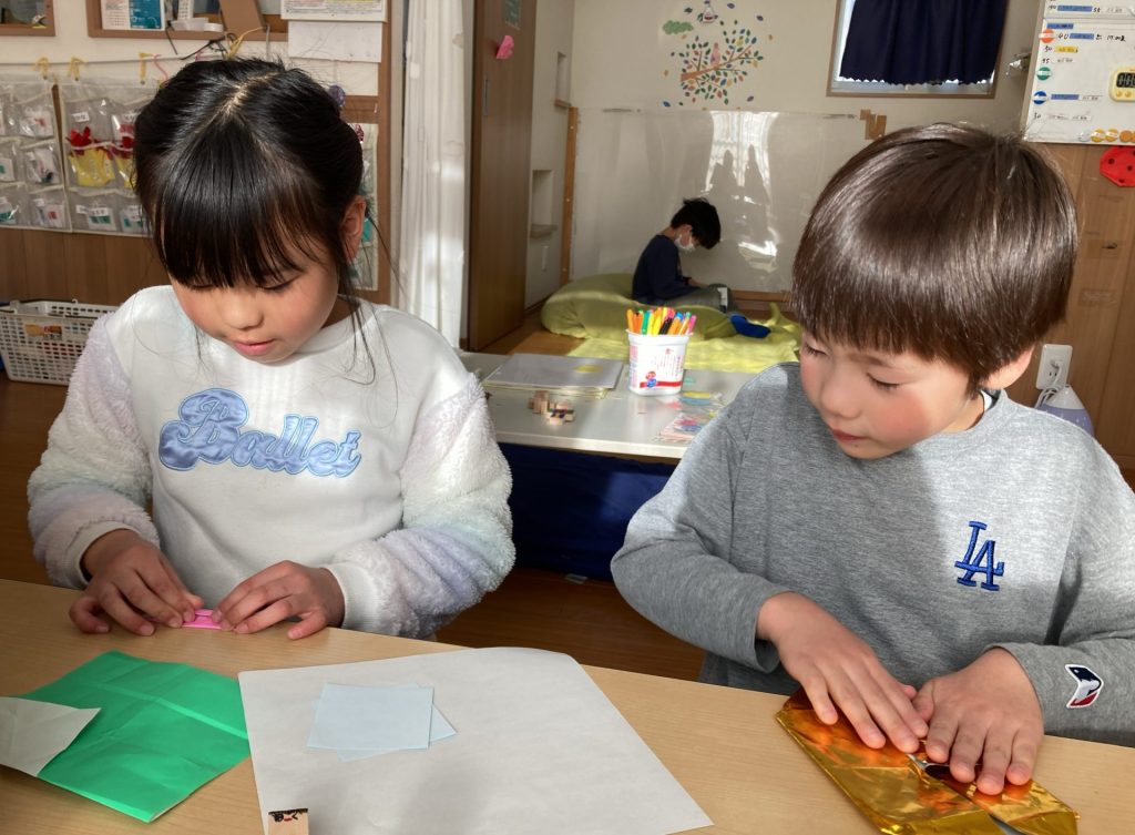 お部屋では風船バレー、サッカーゲーム、ラキュー、レゴブロック、毛糸、フェルト工作、ボードゲーム、読書等をして過ごしました。