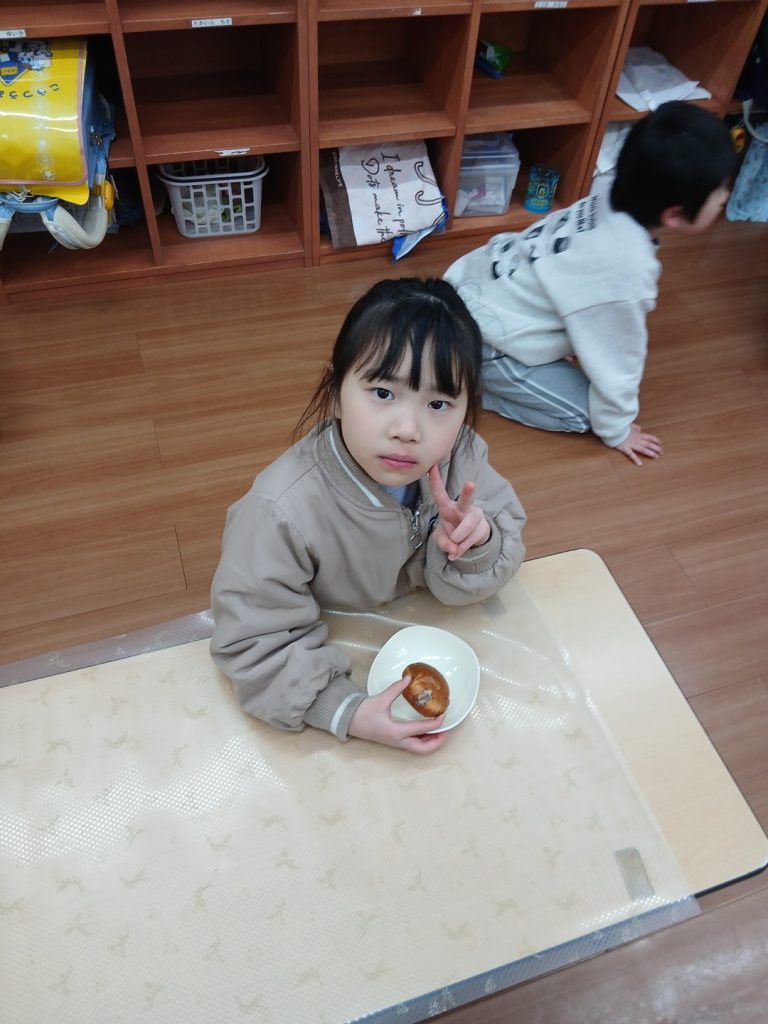 今日は、みなさん5時間授業で帰ってきました。帰ってきてからはおやつの「揚げパン」を食べました!シュガー、チョコホイップ、ホイップの3種類の中からみなさん、好きな味を選んで、食べていました。おやつ後は、犬久保公園に遊びに行きました。犬久保公園では、サッカー、鬼ごっこ、ブランコをしたり、園庭では、三輪車、サッカーをしたりして元気いっぱいに遊びました。テラスでは、風船サッカーやトランポリンをしました。お部屋では、工作、折り紙、読書等をして過ごしました♪