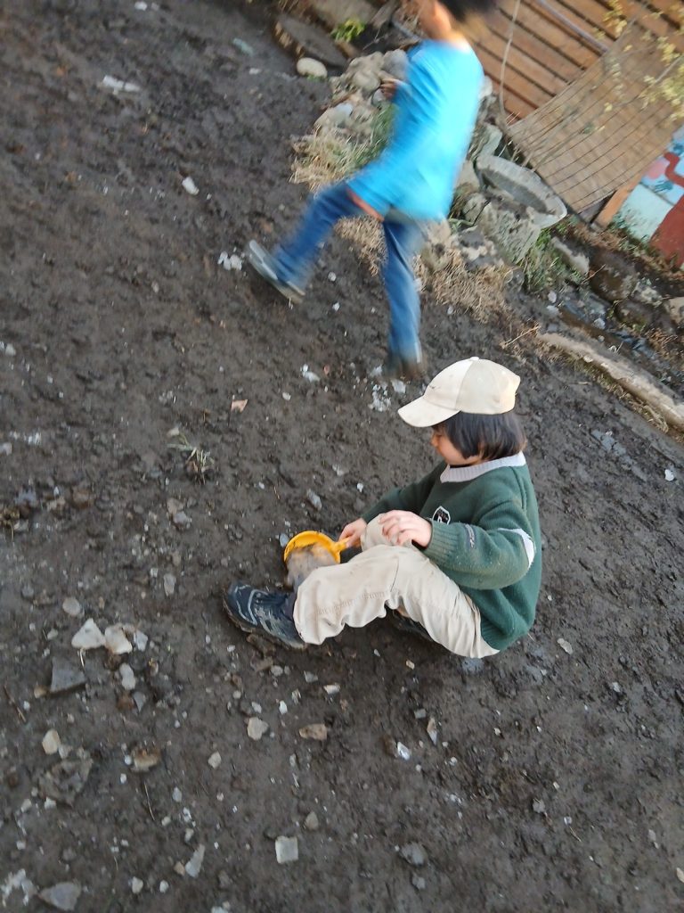 夕方には犬久保公園・園庭・テラスでは野球や鬼ごっこ、かくれんぼ、ブランコ、探検コースの散策、三輪車、氷集め、紙玉でパス練習をして遊びました。