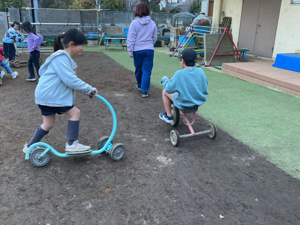 今日は朝から日差しが見られ暖かくなりました!昨日雨が降ったおかげで少し空気がうるおい乾燥状態が解消されたかと思いましたがそれもつかの間今日はまたカラカラに乾燥していました。日陰では先週末に降った雪がまだ解けずに残っていて氷の塊になっていました。今日は1・2年生が5時間授業で14:30頃の登所3年生は6時間授業で15:30頃の登所4年生は授業参観、懇談会があり全員お休みでした。今日も又インフルエンザ等による学級閉鎖のクラスが増え6クラスになっていまいました。終息する気配が見えませんね・・・早く皆が元気になって戻っていて欲しいです。今日から来年度クラブに入所するお友達の入所面接が始まり夕方の時間は全員犬久保公園、グランド、園庭、テラスに行きキャッチボールやサッカー、ブランコ、鬼ごっこ、探検コースの散策、三輪車、バスケットボール等をして遊んだり、砂あそびや雪遊び、テラスで足湯等をして遊びました。足湯は気持ち良かったようでおおバズリ!「疲れが取れる~♨」「あったかーい」と言ってみんなで嬉しそうに入っていました。