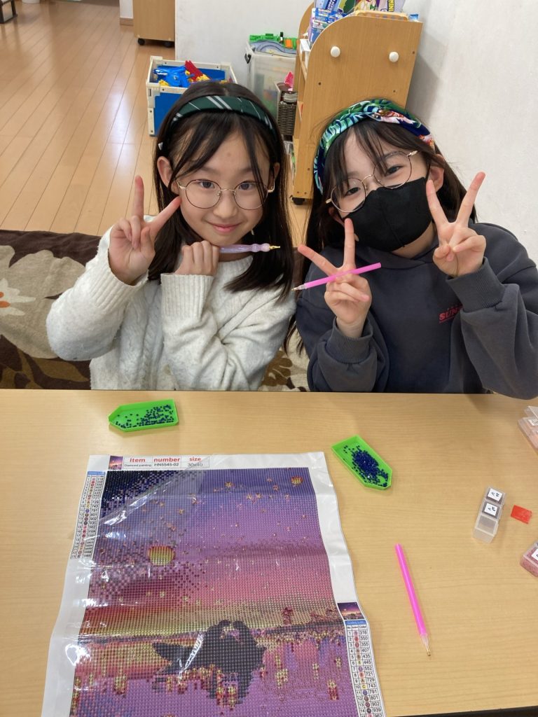 今日は、日中暖かくなりましたね。1、2、3年生は、5時間授業、4年生は6時間授業で帰ってきました!今日のおやつは、「ワンタン入りの塩ラーメン」でした🍜昨日のおやつもブタメンだったので、「今日もラーメン!?」と言いながらも、みなさん美味しく食べていました♪おやつ後は、犬久保公園・園庭とお部屋に分かれて遊びました!犬久保公園では、サッカー、鬼ごっこ、ブランコ、鉄棒、ホッピングをしたり、園庭では、三輪車やバスケをしたりして今週も元気いっぱい遊びました☆お部屋では、ダイヤモンドビーズ、人生ゲーム、プラ板、読書等をして過ごしました!