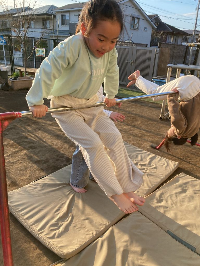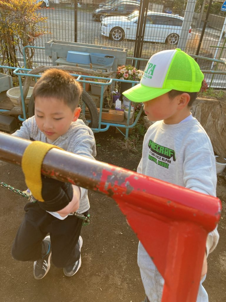 夕方には犬久保公園・園庭・テラスでキャッチボールやサッカー、鬼ごっこ、ブランコ、ホッピング、三輪車、縄跳び、バスケットボールなどをして遊びました!