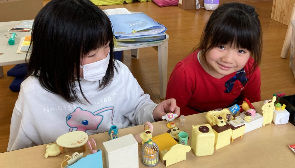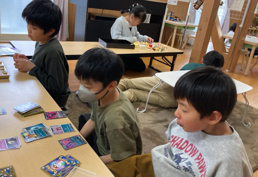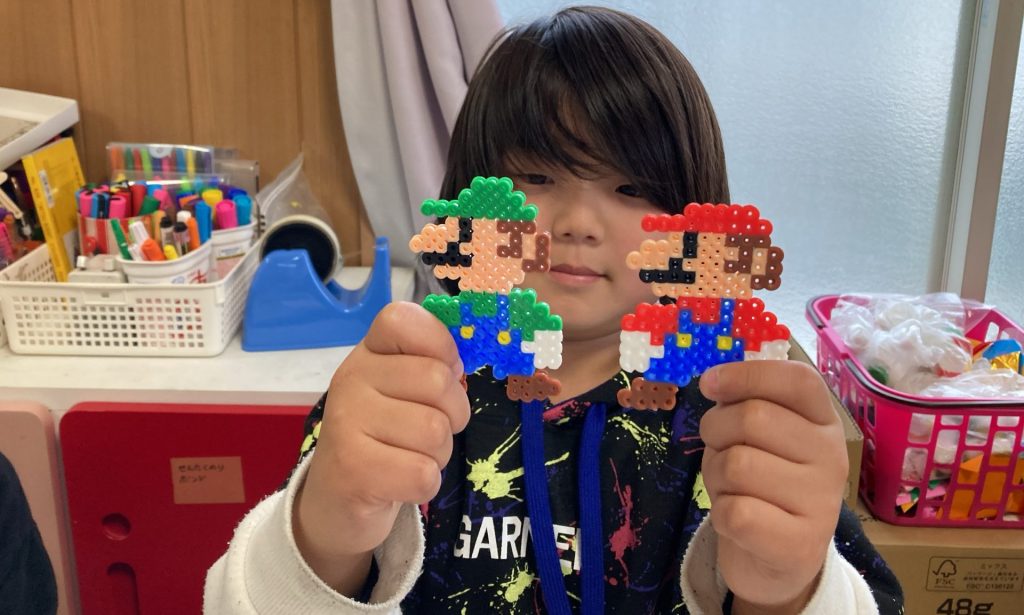お部屋では、アイロンビーズ・将棋・すごろくゲーム・けん玉・コマ回し・ミニチュア玩具・プラレール・カードゲーム・工作などで友達と遊びました。